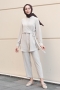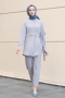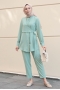 - Takımımız aerobin kumaştan üretilmiştir. Tunik boyu ortalama 85cm, pantolon ise 95cm'dir. Tuniğimizin boydan gizli düğmeli olup, ön kısmında kapama bağlama detayı ile şıklık katmaktadır. Kol manşetleri düğmelidir. Pantolonun beli lastiklidir. Günlük hayatta rahatlıkla kullanabilirsiniz.