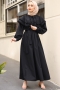 - Ürünümüz terikoton kumaşından üretilmiştir. Boyu ortalama 135cm'dir. Elbisemiz geniş yaka olup, yaka uçlarında güpür detayı vardır. Bel kısmından aşağıya doğru genişleyerek inmektedir. Etek kısmı bel kısmından itibaren kat şeklinde genişleyerek inmektedir. Yanlarda gizli cebi bulunmaktadır. Kol manşetleri düğmeli ve sırt kısmı fermuarlıdır. Kendi kumaşından seyyar kuşağı bulunmaktadır. Astarsızdır, astar kullanmanız önerilir. Günlük kullanım için uygundur.