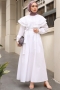 - Ürünümüz terikoton kumaşından üretilmiştir. Boyu ortalama 135cm'dir. Elbisemiz geniş yaka olup, yaka uçlarında güpür detayı vardır. Bel kısmından aşağıya doğru genişleyerek inmektedir. Etek kısmı bel kısmından itibaren kat şeklinde genişleyerek inmektedir. Yanlarda gizli cebi bulunmaktadır. Kol manşetleri düğmeli ve sırt kısmı fermuarlıdır. Kendi kumaşından seyyar kuşağı bulunmaktadır. Astarsızdır, astar kullanmanız önerilir. Günlük kullanım için uygundur.