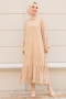 - Ürünümüz şifon kumaştan üretilmiştir. Ortalama 130cm uzunluğundadır. Etek ucuna kadar düz inen elbisemizin alt kısmında fırfır detayı vardır. Kol manşetleri fırfırlıdır. Kollarıda dahil olmak üzere astarlıdır. İç göstermez. Sırt kısmında kullanım kolaylığı açısından gizli fermuar bulunmaktadır. Özel günleriniz için tercih edebilirsiniz.