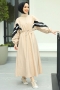 - Ürünümüz ağaç kabuğu aerobin kumaştan üretilmiştir. Boyu ortalama 135cm'dir. Elbisemiz yarım fermuarlı olu, etek kısmı belden aşağıya genişleyerek inmektedir. Kol kısmında renk detayı vardır. Dik yakadır. Kol manşetleri lastiklidir. Bel kısmında lastik büzgü vardır. Astarsızdır, iç göstermez. Günlük hayatta rahatlıkla kullanabilirsiniz.