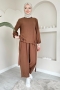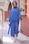 - Ürünümüz aerobin kumaştan üretilmiştir. Tunik ortalama ön 65cm, arka 80cm olup, pantolonu ortalama 90cm'dir. Tuniğimiz gizli kuşaklı olup bağlama detayı mevcuttur. Giyim kolaylığı açısından sırt bölgesinde düğme mevcuttur. Pantolonun beli lastiklidir. Günlük hayatta rahatlıkla kullanabilirsiniz. 36
