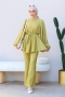 - Ürünümüz krep kumaştan üretilmiştir. Tunik boyu ortalama 85 cm'dir. Ense kısmı fermuarlıdır. Balon kol olup bilek kısmında manşet mevcuttur. Bel kısmından itibaren bol genişleyerek inmektedir. Seyyar kemeri mevcuttur. Pantolonun boyu ortalama 105 cm'dir. beli lastikli olup geniş paça detayına sahiptir. Günlük hayatta rahatlıkla kullanabilirsiniz.