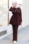 - Ürünümüz krep kumaştan üretilmiştir. Tunik boyu ortalama 85cm, pantolon boyu ortalama 105cm'dir. Tuniğimizin yakası geniş ve çift kat olup, biye detaylıdır. Sırt kısmı kullanım kolaylığı açısından gizli fermuarlıdır. Kol manşetleri dikişlidir. Tuniğimizin seyyar kuşağı bulunmaktadır. Pantolonumuzun beli lastikli olup, ispanyol paçadır. Günlük hayatta rahatlıkla kullanabilirsiniz.