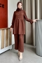 - Ürünümüz gofre kumaştan üretilmiştir. Üst boyu ortalama 85 cm'dir. Pantolon boyu ise ortalama 95 cm'dir. Pantolonumuz bol kesim ve beli lastiklidir. Tuniğimiz yarım düğmeli olup bel kısmından itibaren genişleyerek inmektedir. Günlük hayatta rahatlıkla kullanabilirsiniz.