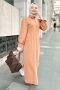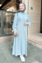 - Ürünümüz terikoton kumaştan üretilmiştir. Boyu ortalama 140cm'dir. Elbisemizin etek kısmı belden aşağıya genişleyerek inmektedir. Kol manşetleri düğmeli ve katlamalıdır. Boydan düğmelidir. Astarsızdır, astar kullanmanız önerilir. Günlük hayatta rahatlıkla kullanabilirsiniz.