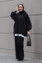 - Ürünümüz çelik örme trikodan üretilmiştir. Tunik boyu ortalama 75 cm, pantolon boyu ortalama 105 cm'dir. Tuniğimiz balıkçı yaka olup, yanlardan 10 cm yırtmaç detaylıdır. Tuniğimizin kolları balon kol, manşetleri dikişlidir. Pantolonumuzun beli lastikli ve bol paçadır. Takımımız iki parça olup, kombin amaçlı "Juli İçlik" kullanılmıştır. Günlük hayatta rahatlıkla kullanabilirsiniz.