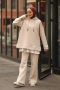 - Ürünümüz üç iplik şardonlu kumaştan üretilmiştir. Sweat boyu ortalama 70cm, pantolon boyu ortalama 105 cm'dir. Standart beden, 36-40 beden aralığı için uygundur. Sweatimiz kapüşonludur. Kol manşetleri dikişlidir. Pantolonumuzun ön kısmı boydan dikişli olup, beli lastiklidir. Günlük hayatta rahatlıkla kullanabilirsiniz.