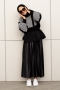 - İkili kombin diloa gömlek ve linya etek olmak üzere iki üründen oluşmaktadır. Gömlek; terikoton ve triko kumaştan üretilmiştir. Boyu ortalama 60cm dir. Yarasa kol ayrıntısı bulunmaktadır. Bel kısmı lastikli ve fırfırlıdır. Etek; jakarlı krep kumaştan üretilen eteğimizin boyu ortalama 85cm'dir. Beli lastikli ve parlak görünümlüdür. İç göstermez. Kalıbı geniştir. Günlük hayatta rahatlıkla kullanabilirsiniz.