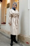 - Trenç kumaşı ile üretilen bu şık trenç modeli, ortalama 110 cm uzunluğundadır. İki ayrı yanında gizli cep ayrıntısı bulunuyor. Beli kemer detaya sahip olan bu şık tasarım, astarsızdır. Önü düğmeli ve kol manşetleri pile tasarım ile bitmektedir. 36-38, 40-42 olmak üzere 2 bedendir. Örn. 36 sipariş edildiğinde 36-38 beden gönderilir.