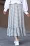 - Ürünümüz gofre kumaştan üretilmiştir. Boyu ortalama 85cm'dir. Eteğimizin beli lastikli olup, aşağıya doğru genişleyerek inmektedir. Etek kısmı fırfırlıdır. Astarsızdır, astar kullanmanız önerilir. Ürünümüz tek parça olup, kombin amaçlı "Holly Gömlek" kullanılmıştır. Günlük hayatta rahatlıkla kullanabilirsiniz.