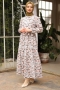 - Ürünümüz terikoton kumaştan üretilmiştir. Boyu ortalama 135cm'dir. Elbisemizin etek kısmı belden aşağıya kat kat inmektedir. Kol manşetleri lastiklidir. Sırt kısmında kullanım kolaylığı açısından gizli fermuar bulunmaktadır. Seyyar kuşağı bulunmaktadır. Astarsızdır, astar kullanmanız önerilir. Günlük hayatta rahatlıkla kullanabilirsiniz.