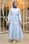 - Ürünümüz terikoton kumaştan üretilmiştir. Boyu ortalama 135cm'dir. Elbisemizin etek kısmı belden aşağıya kat kat inmektedir. Kol manşetleri lastiklidir. Sırt kısmında kullanım kolaylığı açısından gizli fermuar bulunmaktadır. Seyyar kuşağı bulunmaktadır. Astarsızdır, astar kullanmanız önerilir. Günlük hayatta rahatlıkla kullanabilirsiniz.