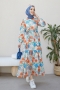 - Ürünümüz krep-saten kumaştan üretilmiştir. Boyu ortalama 135cm'dir. Elbisemizin etek kısmı belden aşağıya kat kat inmektedir. Kol manşetleri lastiklidir. Sırt kısmında kullanım kolaylığı açısından gizli fermuar bulunmaktadır. Seyyar kuşağı bulunmaktadır. Astarsızdır, astar kullanmanız önerilir. Günlük hayatta rahatlıkla kullanabilirsiniz.