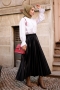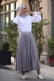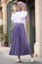 Etek ve gömlek olarak kombin şeklinde 2 parçadır. Jakarlı krep kumaştan üretilen eteğimizin boyu ortalama 90cm'dir. Beli lastikli ve parlak görünümlüdür. Gömlek viskon kumaştan imal edilip ortalama 70'cmdir. Gömlek Standart Bedendir. Etek iç göstermez. Kalıbı geniştir. Rahat kullanım sunar.
