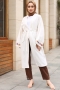 - Ürünümüz keten kumaştan üretilmiştir. Boyu ortalama 105cm'dir. Ürünümüz standart beden olup, 36-42 beden kullanımı için uygundur. Kendi kumaşından seyyar kuşağı vardır. Kol manşetleri geniş olup, işleme detayı bulunmaktadır. Günlük kullanım için uygundur.