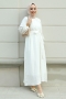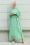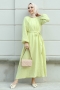 - Ürünümüz dokulu muslin kumaştan üretilmiştir. Boyu ortalama 140cm'dir. Önden yarım düğmelidir. Kolu reglan kol olup, manşetleri lastiklidir. Elbisemiz etek ucuna doğru genişleyerek inmektedir. Seyyar kuşağı bulunmaktadır. Astarsızdır, elbisemizi kumaşından ötürü astarla kullanmanız önerilir. Elbisemizi hassas pamuklu kumaşından ötürü, soğuk su ile elde yıkamanız ve kurutma makinası kullanmadan asarak kurutmanız önerilir. Günlük hayatta rahatlıkla kullanabilirsiniz.