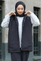 - Ürünümüz kapitone kumaştan üretilmiştir. Boyu ortalama 75cm'dir. Ürünümüz boydan çıtçıt kapamalı olup, iki adet cebi bulunmaktadır. Yakası gömlek yakadır. Yeleğimiz iki iplik pamuklu kapüşonludur. Kapüşonu sabittir, çıkartılamaz. Günlük hayatta rahatlıkla kullanabilirsiniz.