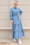 - Ürünümüz aerobin kumaştan üretilmiştir. Elbisemizin geniş kalıptır, bir beden küçük almanız önerilir. Ortalama 145cm uzunluğundadır. Elbisemiz önden yarım düğmeli olup, bel kısmında gizli bağlama detayı vardır. Ön, kol ve etek kısmında güpür detayı vardır. Bel kısmından aşağıya doğru kat şeklinde inmektedir. Kol manşetleri lastiklidir. Astarsızdır, astar kullanmanız önerilir. Özel günleriniz için tercih edebilirsiniz.