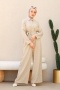 - Ürünümüz keten kumaştan üretilmiştir. Boyu ortalama 150cm'dir. Ön kısmı yarım düğmeli olup, bel kısmında seyyar kuşağı vardır. Bol paça detayına sahiptir. Astarsızdır. Günlük hayatta rahatlıkla kullanabilirsiniz.