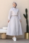 - Ürünümüz terikoton kumaştan üretilmiştir. Boyu ortalama 135cm'dir. Elbisemiz boydan düğmeli olup kol manşetleri lastiklidir. Bel kısmı bağlama detaylıdır. Astarsızdır, iç göstermez. Günlük hayatta rahatlıkla kullanabilirsiniz.