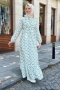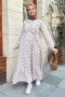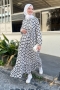 - Ürünümüz terikoton kumaştan üretilmiştir. Boyu ortalama 140cm'dir. Elbisemizin etek kısmı belden aşağıya kat kat inmektedir. Kol manşetleri lastikli olup kendi kumaşından seyyar kuşağı vardır. Ön kısmı yarım düğmelidir. Astarsızdır, astar kullanmanız önerilir. Günlük hayatta rahatlıkla kullanabilirsiniz.