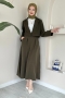 - Ürünümüz krep kumaştan üretilmiştir. Ceket boyu ortalama 45 cm'dir. Eteğimizin ise boyu ortalama 100 cm'dir. Ceketimizin bel kısmında bir adet düğme bulunmaktadır. Eteğimizin iki adet cep detayı olup astarsızdır. Kombin amaçlı 'Ying T-Shirt Kullanılmıştır, ürüne dahil değildir. Günlük kullanım ve özel günleriniz için tercih edebilirsiniz.