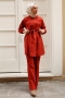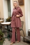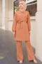 - Krep kumaştan imal edilen ürünümüzün üstü ortalam 90cm'dir. Yakalıdır ve yakasında düğme bulunmaktadır. Kol ağzı büzgülüdür. Pantolon beli lastikli olup ortalama 105cm'dir. Kemerlidir. 36-38, 40-42 olmak üzere 2 bedendir.