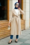 - Krep kumaştan üretilen ürünümüz ortalama 110 cm'dir. İki adet cep detaylıdır. Belinde kendi kumaş ve renginden gizli kemeri mevcuttur. Ürünün yanlardaki yırtmaç detayı ile şık bir görünüm sunmaktadır.