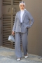 - Ürünümüz krep kumaştan üretilmiştir. Boyu ortalama ceket ön 75 cm, arka 85 cm'dir. Pantolon boyu ise ortalama 110cm'dir. Ceketimiz çift düğmeli olup, kollarda düğme detayı bulunmaktadır. Astarsızdır. Pantolonumuzun bel kısmı lastikli ve düğmelidir. Günlük hayatta rahatlıkla kullanabilirsiniz.