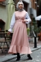 - Krep kumaştan üretilmiş olup ortalama 130cm uzunluğundadır. Etek kısmı fırfır detaylı olup kendi kumaşından kaplama kemeri mevcuttur. Kumaşı ortalama 1,5 cm aralıklarla belirli belirsiz beyaz çizgi desenlidir. Ensesi ortalama 20cm gizli fermuarlıdır. Kemeri ortalama 105cm'dir. 36-38 ve 40-42 olmak üzere 1 ve 2 bedenlidir. Ürün renginde konsept çekimlerinden dolayı ufak ton farklılıkları olabilir.