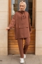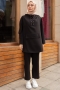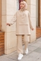 - Ürünümüz krep kumaştan üretilmiştir. Tunik boyu ortalama 80cm, pantolon boyu ortalama 100cm'dir. Tuniğimizin yakası kuş gözü detaylı olup, süs ipi mevcuttur. Ön kısmında süs kapak detayı vardır. Tuniğimiz kapüşonlu ve kol manşetleri dikişlidir. Pantolonumuzun beli lastiklidir. Günlük hayatta rahatlıkla kullanabilirsiniz.