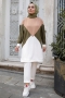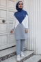 - Örme krep kumaştan imal edilen takımın üstü ort. 85cm olup pantolonu ort. 95cm'dir. Pantolon beli tamamen lastiklidir. Tunik bisiklet yakadır.