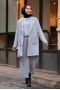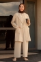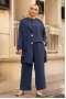 - Ürünümüz A sınıf krep kumaştan üretilmiştir. Pantolon, bluz ve tunik olmak üzere üç parçadan oluşmaktadır. Pantolonun beli lastikli, boyu ortalama 90 cm'dir. İç bluz sıfır kollu ortalama 65 cm'dir. Üst tunik önü açık, aksesuar düğmeli, ortalama 85 cm'dir.