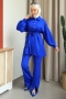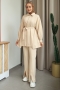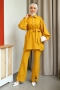 - Ürünümüz krep kumaştan üretilmiştir. Tunik boyu ortalama 85 cm, Pantolon boyu ise ortalama 105 cm'dir. Balon kol olup bilek kısmında manşet mevcuttur. Kendi kumaşından seyyar kuşağı vardır. Göğüs kısmı yarım düğmelidir. Pantolonumuzun beli lastikli olup paça kısmında 15 cm'lik yırtmaç bulunmaktadır. Günlük hayatta rahatlıkla kullanabilirsiniz.