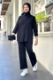 - Ürünümüz bürümcük kumaştan üretilmiştir. Üst boyu ortalama 85 cm'dir. Pantolon boyu ise ortalama 95 cm'dir. Pantolonumuz bol kesim ve beli lastiklidir. Tuniğimiz boydan düğme detaylıdır. Günlük hayatta rahatlıkla kullanabilirsiniz.