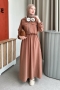 - Ürünümüz modal kumaştan üretilmiştir. İki parçadan oluşmaktadır. Elbise sıfır kol olup ceket elbise ile birleşik değildir. Elbise boyu ortalama 145 cm olup ceket boyu ortalama 50 cm'dir. Elbisenin beli büzgülüdür. Ceketimizin kol manşetleri ve beli büzgülüdür. Astarsızdır, astar kullanmanız önerilir. Günlük hayatta rahatlıkla kullanabilirsiniz.