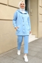 - Ürünümüz scuba kumaştan üretilmiştir. Tunik boyu ortalama 70cm, pantolon boyu ortalama 100cm'dir. Tuniğimiz boydan çıtçıt kapamalı olup, kapüşonludur. Ön kısmında kanguru cep detayı vardır. Pantolonumuzun beli lastikli, paça kısımları detaylıdır. Ürünümüz ikili takım olup, iç kısmında "Calist Beyaz İçlik" kullanılmıştır.Günlük hayatta rahatlıkla kullanabilirsiniz.