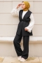 - Ürünümüz krep kumaştan üretilmiştir. Yelek boyu ortalama 75cm, pantolon boyu ortalama 105cm'dir. Yelek astarlı olup, ister büzgülü ister büzgüsüz olarak kullanabilirsiniz. Ön kısmı tek düğmeli, V yakadır. Pantolonumuzun beli düğmeli ve fermuarlıdır. Düz geniş kesimdir. Ürünümüz ikili takımdır. Günlük kullanım için uygun bir üründür. Manken Ölçüleri: Boy 162cm, 48 Kilo, 36