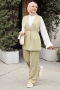 - Ürünümüz krep kumaştan üretilmiştir. Yelek boyu ortalama 75cm, pantolon boyu ortalama 105cm'dir. Yelek astarlı olup, ister büzgülü ister büzgüsüz olarak kullanabilirsiniz. Ön kısmı tek düğmeli, V yakadır. Pantolonumuzun beli düğmeli ve fermuarlıdır. Düz geniş kesimdir. Ürünümüz ikili takımdır. Günlük kullanım için uygun bir üründür. Manken Ölçüleri: Boy 162cm, 48 Kilo, 36