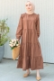- Ürünümüz terikoton kumaştan üretilmiştir. Boyu ortalama 125cm'dir. Elbisemizin omuzlarında fırfır detayı olup, etek kısmı kat şeklinde genişleyerek inmektedir. Kol manşetleri lastiklidir. Astarsızdır, astar kullanmanız önerilir. Günlük hayatta rahatlıkla kullanabilirsiniz.