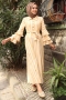 - Pamuklu keten kumaştan imal edilen elbisemiz ortalama 135cm uzunluğundadır. Yazlıktır. Kuşağı mevcuttur. 36-38-40-42 olmak üzere 4 bedendir. En çok satanlar arasında bulunan Solenta elbiselerimizin 7 farklı rengi mevcuttur.