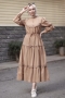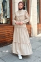 - Ürünümüz terikoton kumaştan üretilmiştir. Boyu ortalama 140cm'dir. Elbisemizin etek kısmı belden aşağıya kat kat inmektedir. Kol manşetleri düğmelidir. bel kısmında gizli bağcık detayı mevcuttur. Astarsızdır, astar kullanmanız önerilir. Günlük hayatta rahatlıkla kullanabilirsiniz.