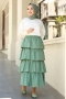 - Ürünümüz terikoton kumaştan üretilmiştir. Boyu ortalama 90cm'dir. Kat kat şekilde genişleyerek inmektedir. Beli lastiklidir. Astarsızdır, iç göstermez. Günlük hayatta rahatlıkla kullanabilirsiniz.