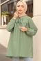 - Ürünümüzün gofre kumaştan üretilmiştir. Boyu ortalama 75cm'dir. Tuniğimizin yaka kısmı bağlama detaylı olup, göğüs kısmından itibaren geniş inmektedir. Kol manşetleri lastiklidir. Günlük hayatta rahatlıkla kullanabilirsiniz.