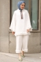 - Ürünümüz keten kumaştan üretilmiştir. Tunik boyu ortalama 80, pantolon boyu ortalama 90cm'dir. Tuniğimizin ön kısmı işleme detaylı olup, yarım fermuarlı ve etek ucu püskül detaylıdır. Kol manşetleri geniş ve, püsküllüdür. Pantolonumuz geniş paça ve paçalarında püskül detayı vardır.