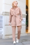 - Ürünümüz scuba kumaştan üretilmiştir. Tunik boyu ortalama 85cm, pantolon boyu ortalama 100cm'dir. Takımımızın tuniği boydan fermuarlı olup, yaka kısmı geniş yakadır. Bel kısmında gizli kuşak detayı ve ön kısmında iki adet cebi bulunmaktadır. Kol manşetleri lastiklidir. Pantolonumuzun beli lastiklidir. Günlük hayatta rahatlıkla kullanabilirsiniz.