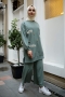 - Ribana kumaştan imal edilen ürünümüz nakış detaylı bir modeldir. Üstü ortalama 90cm olup (ön ile arka arasında model gereği ort 5 cm fark vardır. Arka daha uzundur.) pantolonu ortalama 95 cm'dir. Pantolon ön beli düz arka beli ise lastiklidir. 36-38, 40-42 olmak üzere 2 bedendir. Örn. 36 sipariş edildiğinde 36-38 beden gönderilir.